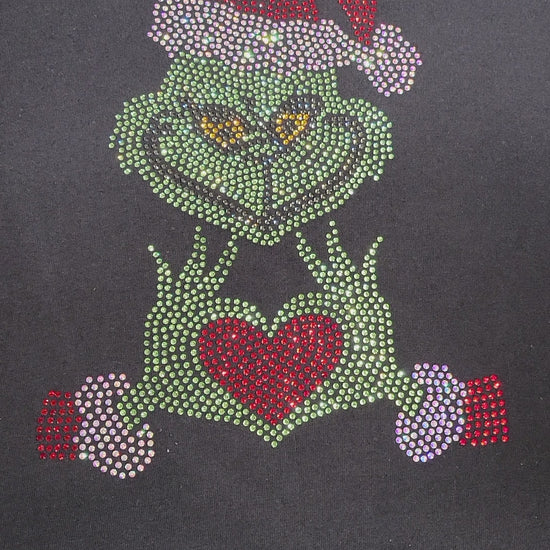 Christmas Grinch Blinged Rhinestone Off the shoulder long sleeve sleek
